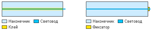Таким образом необходимо точно и плотно совместить оба световода. Чтобы обеспечить сохранность хрупкого волокна при многократном совмещении, их оконечные отрезки помещают в керамические, пластмассовые или стальные наконечники. Большинство наконечников имеют цилиндрическую форму с диаметром 2,5 мм. Встречаются конические конструкции, а коннекторы LC имеют наконечник диаметром 1,25 мм.Внутри наконечников существует канал, в который вводится и фиксируется химическим или механическим способом очищенный от оболочки световод. При удалении защитного покрытия могут использоваться как специальные механические инструменты, так и химически активные растворы. Внутри наконечника световод может фиксироваться как по всей длине канала (чаще это методы на основе клея), так и в точке ввода волокна в наконечник (механические методы). Процесс механической фиксации занимает гораздо меньше времени (до нескольких минут) и основан на "придавливании" волокна с помощью полимерных материалов. Но он является менее надежным и недолговечным. Химический способ говорит сам за себя. Чаще всего фиксирующим составом в данной технологии выступают эпоксидные растворы, как наиболее надежные. Однако период полного загустевания такого состава весьма продолжителен –до суток. Поэтому при необходимости более быстрого монтажа коннекторов могут применяться другие компоненты или специальные печи для сушки.
