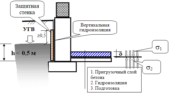 - Наличие грунтовых вод. Для борьбы с ними необходимо произвести наружную вертикальную гидроизоляцию стен фундамента по всему периметру. А также провести гидроизоляцию пола в подвале или подполье.