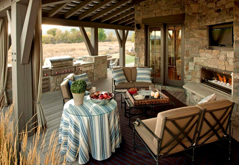 - наличие камина согреет в прохладные вечера и сделает обстановку более уютной;