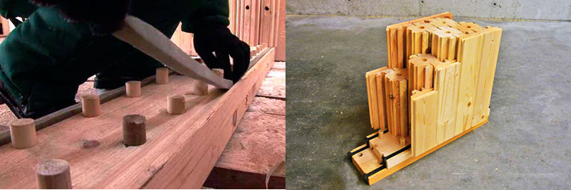 - Шпунты (нагели) считаются самым прочным соединением деревянных элементов, что сказывается на прочности дома;