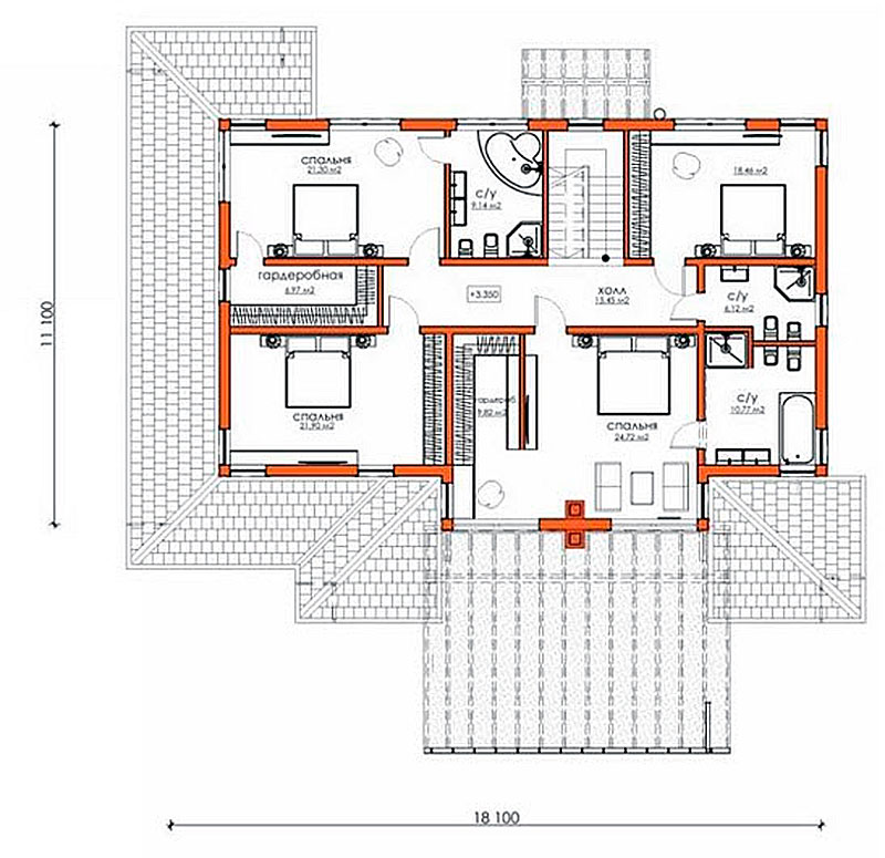 По желанию заказчика можно спроектировать дом со стенами различной конфигурации. Не будет проблем и со строительством как скромного по размерам дома, так и большого элитного загородного коттеджа. Единственное ограничение – невозможно сделать мансарду. Здесь уже придется возводить полноценный второй этаж здания.