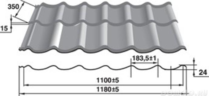Виды волны металлочерепицы различаются по двум параметрам: высоте и шагу. Стандартной считается волна с высотой 23-35 мм и шагом 350 мм.