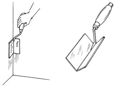 3. Выровнять углы можно и угловым шпателем – инструментом, на ручке которого насажена пластина, согнутая под углом 90?. Им же можно разглаживать углы и при установке профилей.