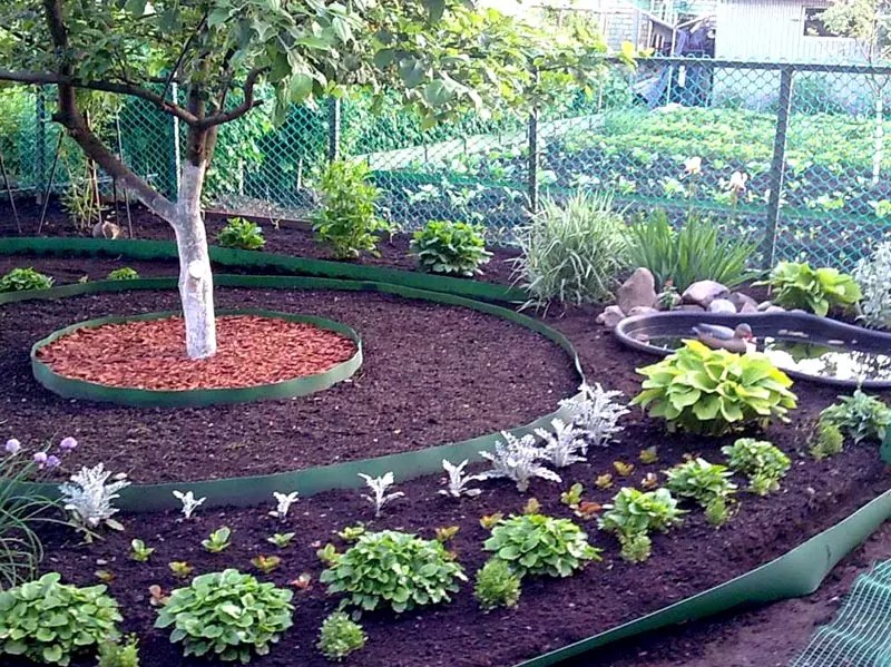 Лента позволяет оградить клумбы и грядки любой формы: круглые, овальные, геометрически неправильные, что расширяет дизайнерские возможности владельцев. Цвет ее может быть любым, но многие предпочитают зеленые или коричневые ограждения. С ее помощью также можно создавать многоярусные клумбы, которые особенно хорошо смотрятся как украшение перед фасадом дома.