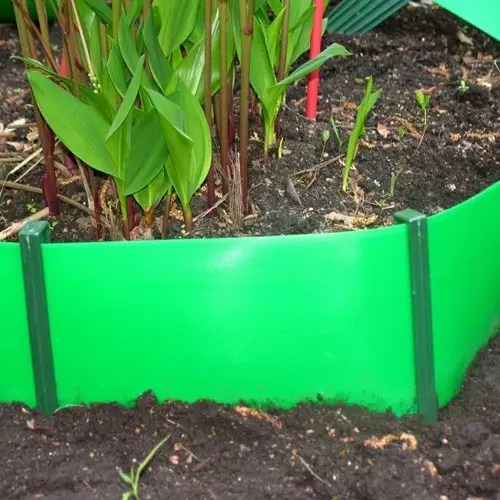 - пластиковые бордюрные ленты представляют собой гибкие элементы, с помощью которых обрамляют грядки приподнятого типа. Их высота составляет 20-50 см;