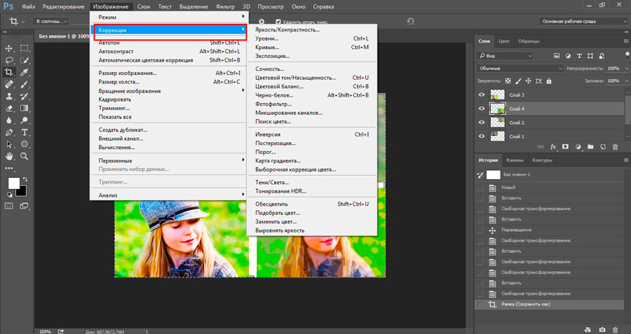 Какими именно? «Изображение» в верхней панели инструментов. Особое внимание уделите коррекции. Здесь много всяких штуковин, способных удивить друзей и разнообразить ваш досуг.